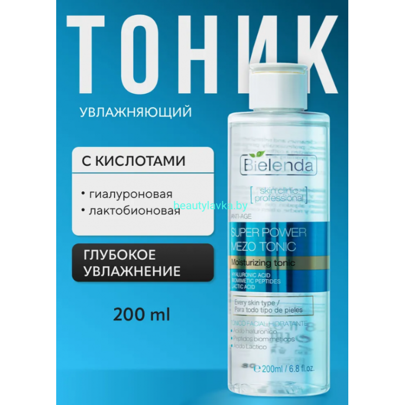 "SKIN CLINIC PROFESSIONAL Bielenda Тоник для лица с гиалуроновой кислотой" - это продукт, предназначенный для ухода за кожей лица, разработанный польским брендом Bielenda в рамках их профессиональной линии SKIN CLINIC PROFESSIONAL.